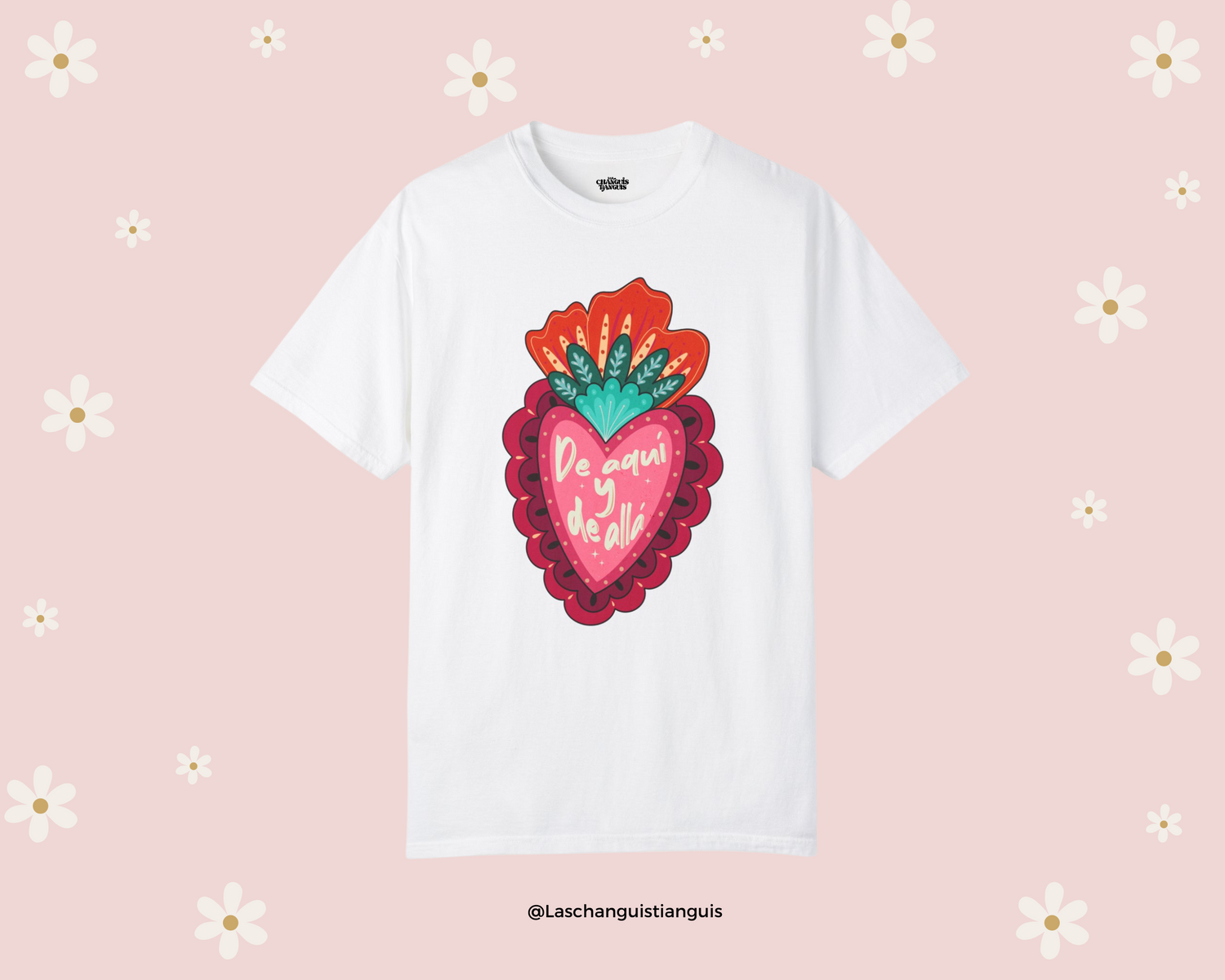 De Aquí y De Allá Comfort Colors T-Shirt – Chicano, Latino, Immigrant Pride Shirt