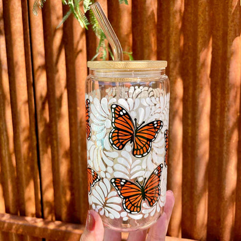 Libbey Talavera Monarch Butterfly Glass Cup – 16 oz - Dia de Muertos Mariposa Monarca Cup