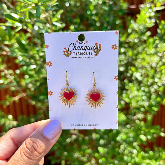 Sacred Heart Burst Earrings – Red & Gold Statement Jewelry | Latina-Owned Handmade Earrings | Las Changuis Tianguis