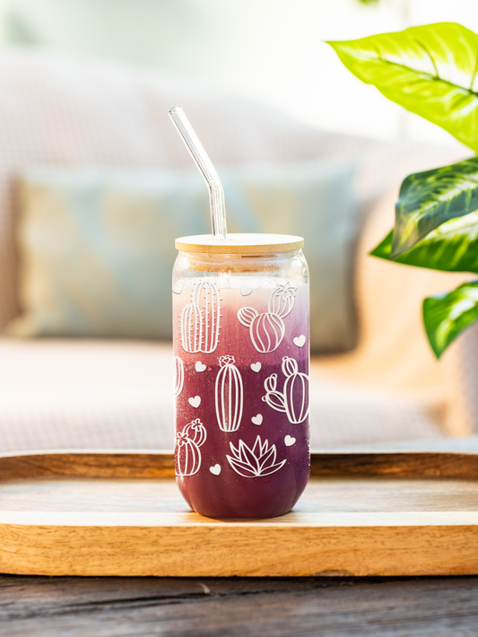 Desert Cactus 16 oz Glass Can with Bamboo Lid & Glass Straw