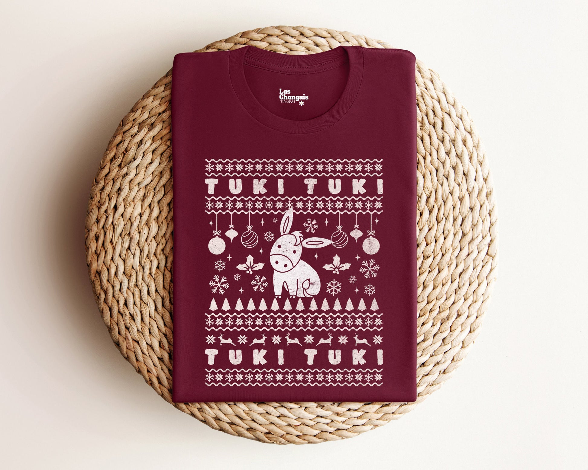 **Unique Design:** The Tuki Tuki Latina Ugly Christmas Shirt showcases a playful yet culturally significant design that reflects your love for your heritage and the musical traditions of Christmas in Latin America.