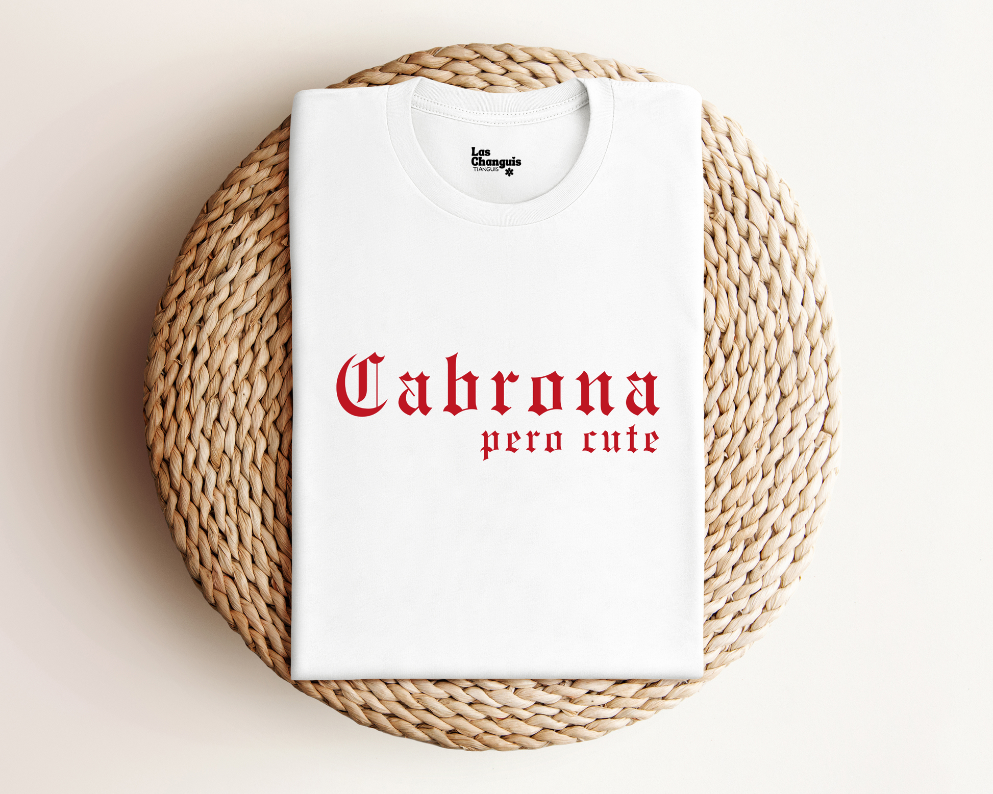 - Chic Design: "Featuring the vibrant words 'Cabrona Pero Cute' in a stylish font, this shirt celebrates the strength and beauty in all of us. It's a proud nod to Latina fierceness and femininity."