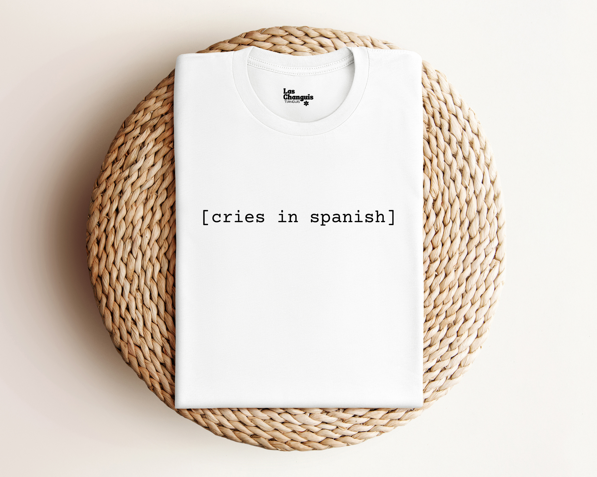 - Design Details: "Featuring the catchy phrase 'Cries in Spanish' in a classic subtitle font, this shirt is more than just a piece of clothing – it's a conversation starter."
