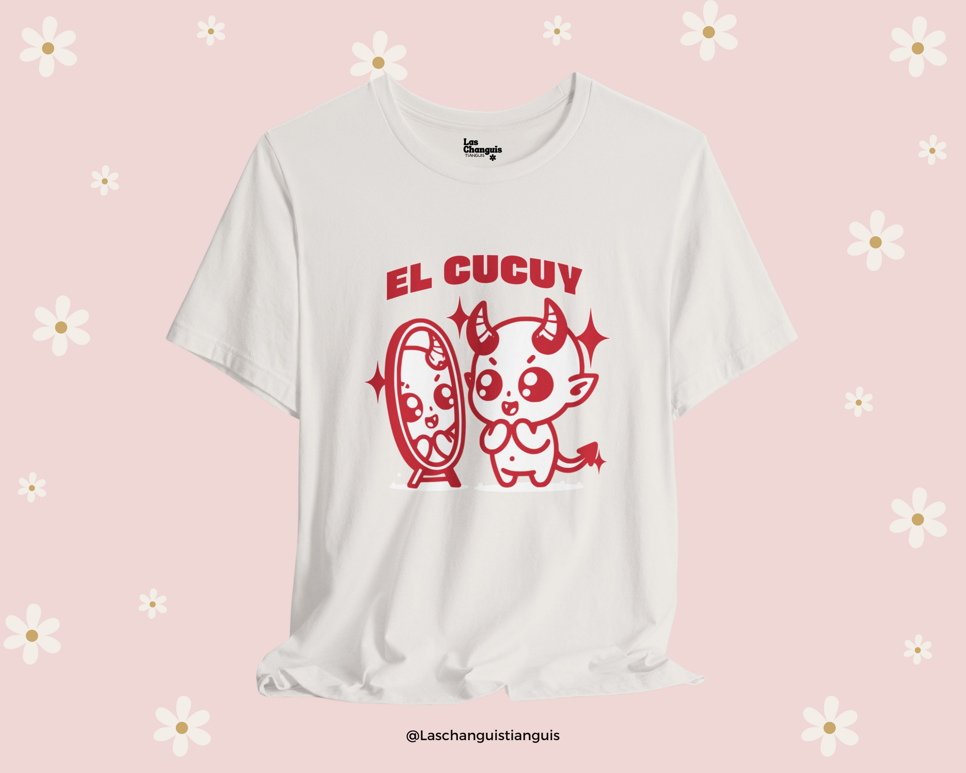 Bring a touch of folklore charm to your Halloween wardrobe with our "El Cucuy" shirt or crop top! This unique design features the legendary El Cucuy, a character from Latinx folklore, looking adorably cute with anime-style eyes, gazing at themselves in a mirror. Perfect for those who love a blend of tradition and modern kawaii style.