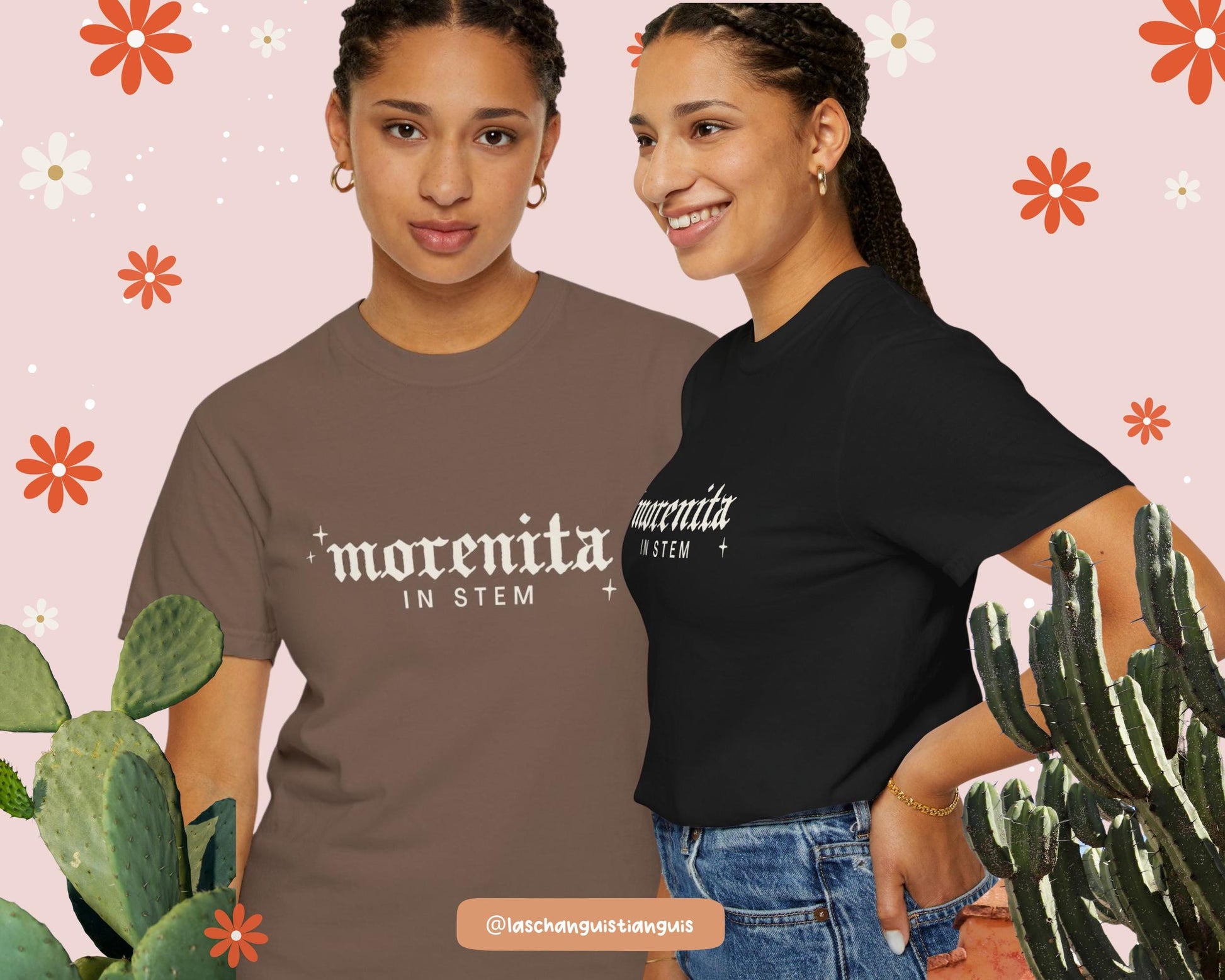 This "Morenita in STEM" tee is for the bold, brilliant, and unapologetically brown women showing up in spaces not built for us but claimed by us.