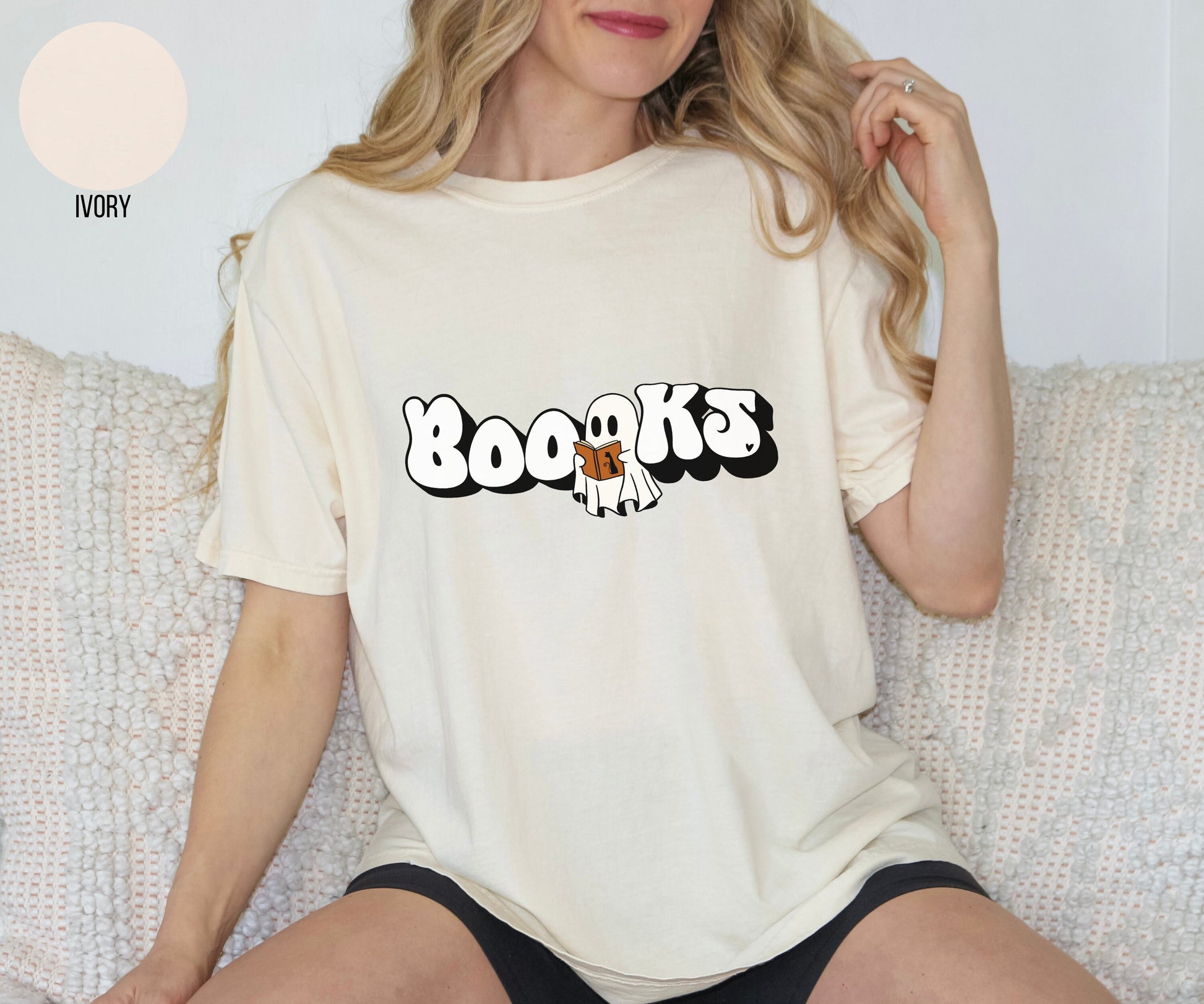 Don't miss out on this opportunity to connect with your students through your style and ignite conversations about the joy of reading. Order your 70s retro 'BOOKS' Oversized Halloween Teacher Shirt today and make this Halloween a truly memorable one for you and your students.