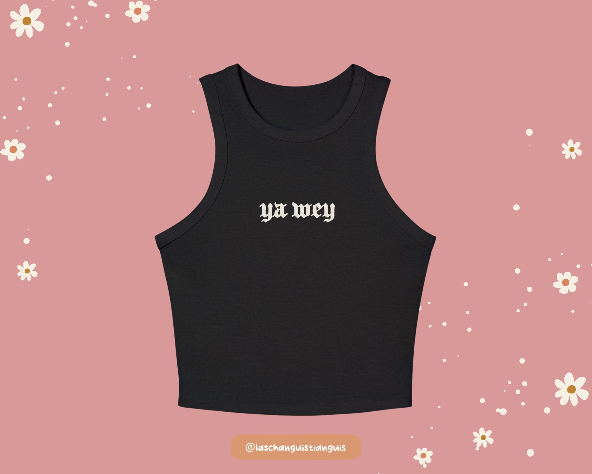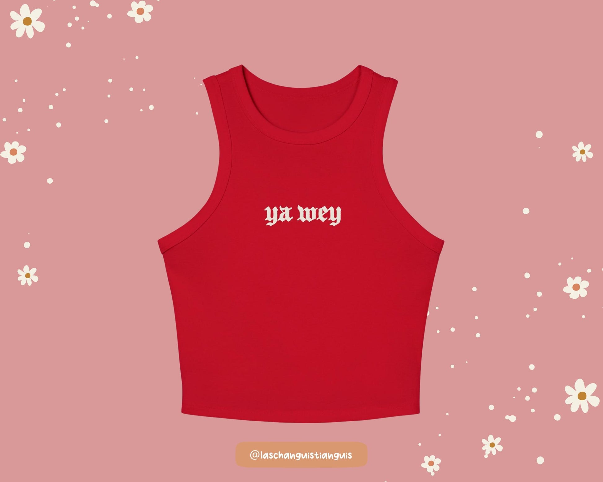 This tee is for the girls who grew up code-switching, eye-rolling, and laughing through it all. Made for Chicanas, primas, and mujeres who live in Spanglish, this tank is your new go-to when you’re just over it; pero make it cute.